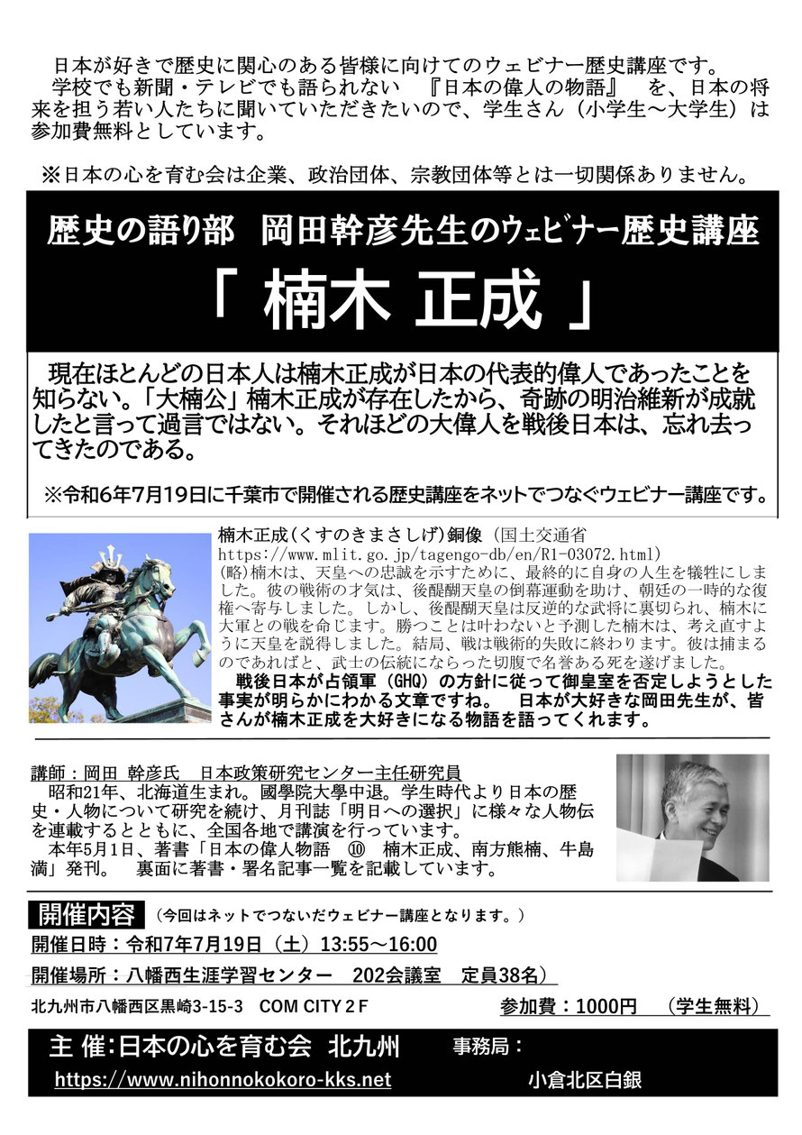 7月19日(土)14:00~16:00「歴史講座 楠木正成」を開催しました。