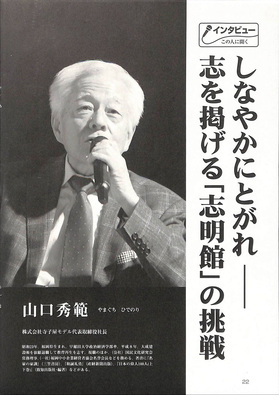 今日本で私立の小中学校新設と言えば、得てして英語教育や国際化教育といったことがクローズアップされがちだが、誇りと志をもったリーダーを育てることをめざした小中一貫校が来年四月に北九州市に開校することになり、注目を集めている。この学校設立の推進者の一人である株式会社「寺子屋モデル」社長の山口秀範さんに話を聞いた。